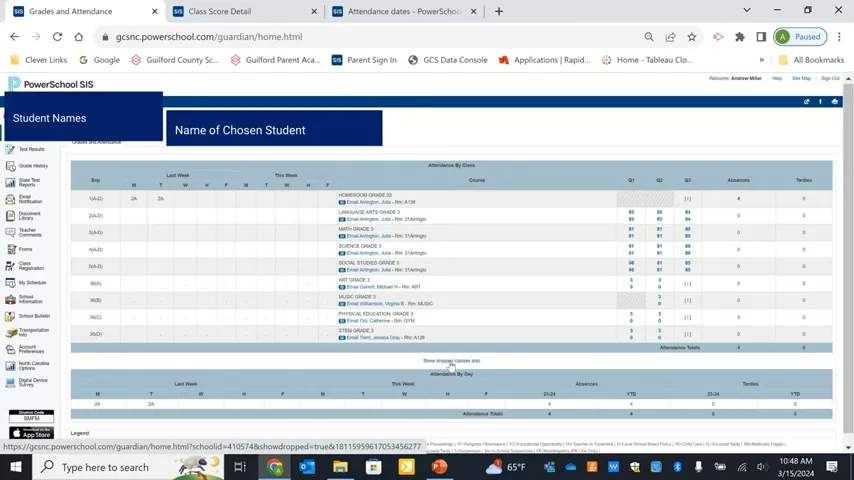 The portal displays attendance records clearly. Whether your child was present, tardy, or absent, you’ll know immediately.