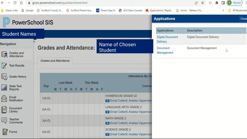 After logging in your district school parent portal, you’ll have access to a customized dashboard that shows grades, attendance, assignments, and more. If you notice any missing features or updates, it’s best to contact your school’s PowerSchool administrator. Slide the images you will see the details of everything.